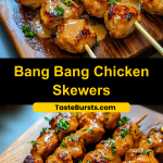 Golden brown, char-grilled, and generously coated in a spicy-sweet creamy sauce—Bang Bang Chicken Skewers are the crowd-pleasing favorite you didn’t know you needed. Juicy pieces of chicken are marinated, skewered, grilled to perfection, and finished with a bold Bang Bang sauce that’s both creamy and fiery. Perfect for BBQ nights, casual weeknight dinners, or when you need a fun twist for your appetizer spread.
