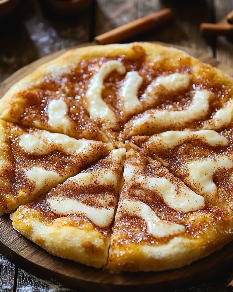 Imagine biting into a warm, golden crust, laced with melted butter, a generous sprinkle of cinnamon sugar, and finished with a dreamy vanilla glaze drizzle. That’s the joy of Cinnamon Sugar Pizza—a simple yet decadent dessert that combines the comforting flavor of cinnamon rolls with the fun of pizza night.