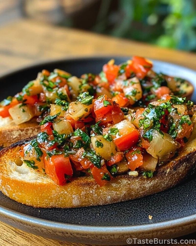 This dish is a celebration of garden-fresh ingredients and rustic flavors. Whether you’re hosting guests or just want a satisfying snack without much fuss, this bruschetta delivers a gorgeous balance of textures and tastes. With just a few pantry staples and some crusty bread, you’ll have a Mediterranean masterpiece ready in minutes.
