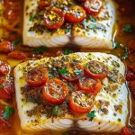 Golden, flaky fish fillets nestled in a rustic sauce of juicy cherry tomatoes, briny capers, and fresh herbs—this Mediterranean Baked Fish with Tomatoes brings the sun-soaked flavors of southern Europe right to your kitchen. It’s a dish that feels elegant but comes together effortlessly, making it perfect for both weeknight dinners and dinner parties.